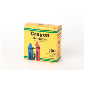 ASO CAREBAND™ DECORATED BANDAGES "Crayola Bandages, 3/4\" x 3\" Strips, Latex Free (LF), Assorted (red, yellow & blue), 100/bx, 12 bx/cs"