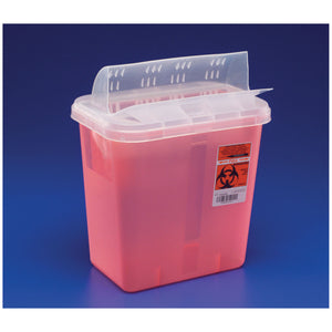 CARDINAL HEALTH IN-ROOM CONTAINERS WITH ALWAYS-OPEN LIDS "Sharps Container, Always-Open Lid, 5 Qt, Transparent Red, 11\"H x 43/4\"D x 103/4\"W, 20/cs "