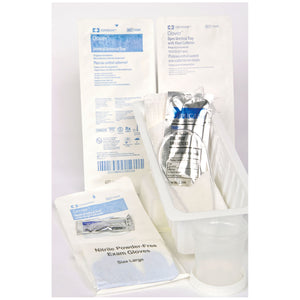 All trays feature (unless otherwise indicated): Peel-back lid, underpad, waterproof drape, lubricating jelly, Blue Nitrile exam gloves and specimen container.