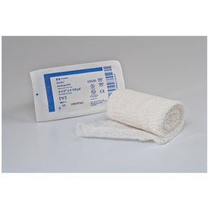 Made of prewashed, fluff-dried 100% woven gauze with unique crinkle-weave pattern for loft and bulk to cushion and protect wound areas. Six-ply construction with finished edges reduces loose ends and lint. As primary dressing, open-weave design provides fast wicking action, superior aeration and excellent absorbency. As secondary dressing, it provides bulk, cushioning and ultimate conformability. Ideal for bandaging heads, limbs and difficult-to-dress wounds; i.e., burns, plastic and orthopedic wounds.