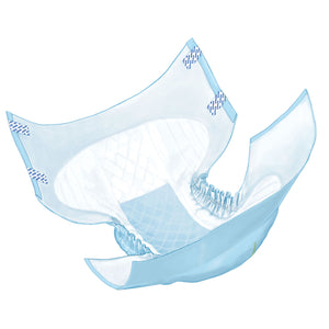 Feature padded wings for greater comfort and absorbency. Full absorbent mat brief is designed for persons restricted by total incontinence, with leg gathers for superior fit and containment. Poly-Fresh super-absorbent polymer provides maximum absorbency. Extra soft stay-dry facing and moisture-proof backing enhance patient comfort. Oversized tape tabs provide a secure fit. Blue dryness strip for optimum skin protection. Diamond and linear embossing provides maximum pad stability and utilization.