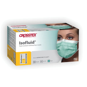 CROSSTEX ISOFLUID® EARLOOP MASK ASTM Level 1 Mask, Latex Free (LF), Teal, 50/bx, 10 bx/ctn