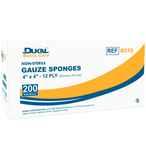 DUKAL BASIC GAUZE SPONGES "Gauze Sponge, 4\" x 4\", Non-Sterile, 12-Ply, 200/bg, 10 bg/cs (72 cs/plt)"