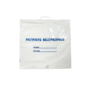 Durable for holding patient's clothing and belongings. Can easily be hung from wheelchair or gurney. Designated space to write patient's name and room number.