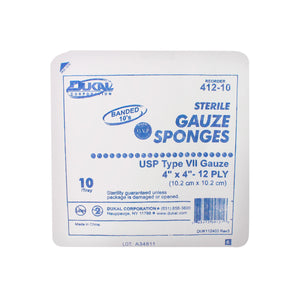 DUKAL WOVEN COTTON GAUZE SPONGES "Gauze Sponge, 4\" x 4\", Sterile Tray, 12-Ply, 10/tray, 128 tray/cs"