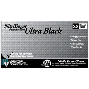 INNOVATIVE NITRIDERM® ULTRA BLACK POWDER-FREE NITRILE SYNTHETIC Gloves, Exam, X-Small, Nitrile, Chemo & Fentanyl Tested, Non-Sterile, PF, Textured, Black, 100/bx, 10 bx/cs